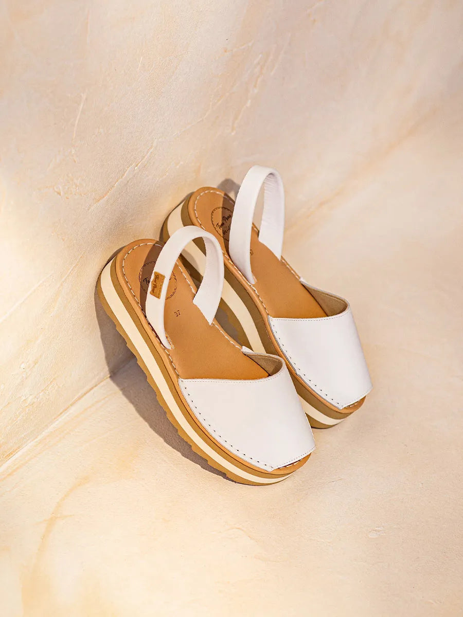 ALAIOR-P. This women's platform sandal is made of leather. The sole is made of EVA rubber and the base of the sole is non-slip. It features a cushioned insole for greater comfort. It has a total height of 4 cm.