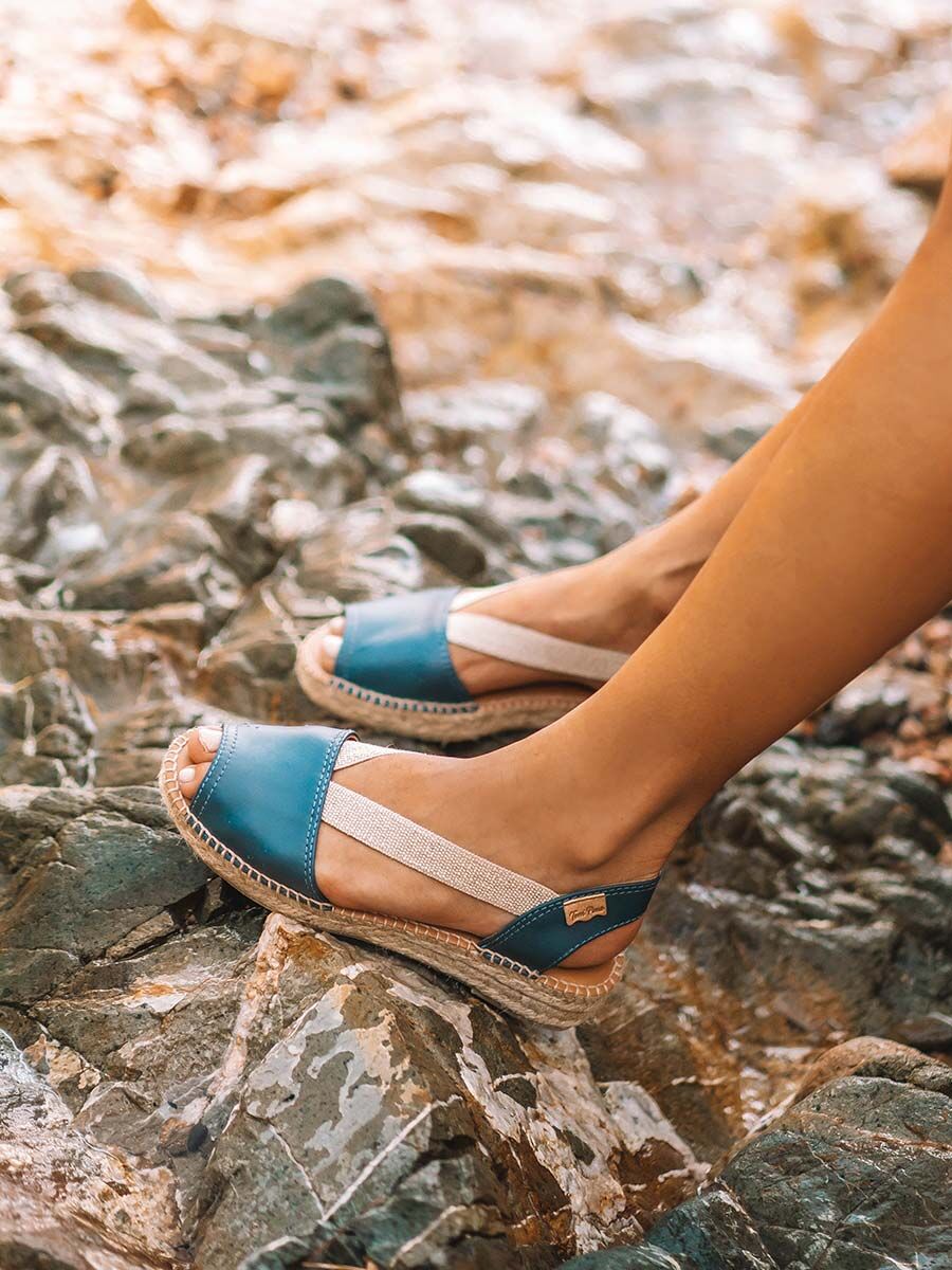 Etna. This women's leather espadrille is made in plain colours. The jute wedge is 3.5 cm high. The base of the sole is made of non-slip rubber. Two elasticated side straps provide optimum support for the foot. The insole is lined with leather for comfort. The leather and sole are hand-stitched together with high-quality cotton thread. This model fits true to size