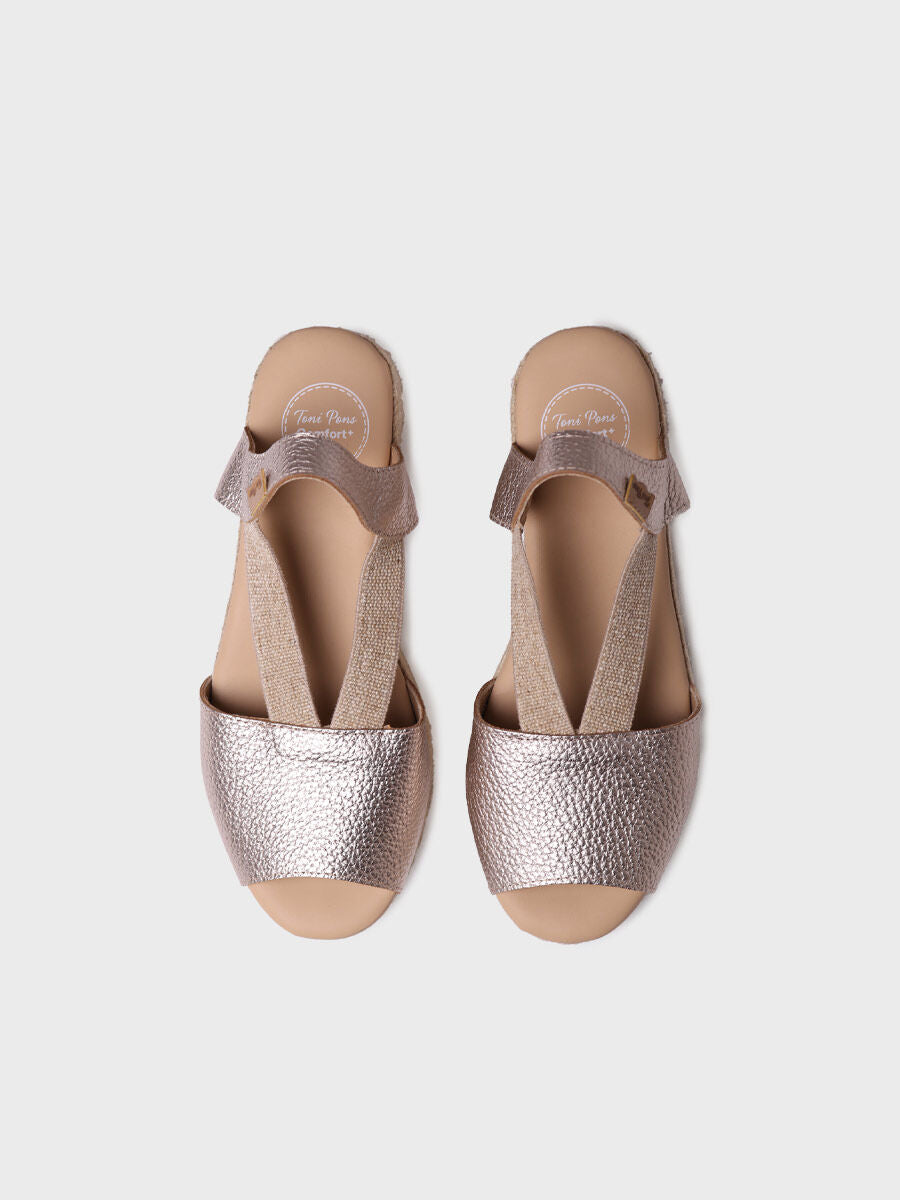 NUVOL. This espadrille is part of the Comfort+ collection and is designed to provide a wider fit. It is made of leather in solid colours. The jute wedge is 3.5 cm high. The base of the sole is made of non-slip rubber. Two elasticated side straps provide optimum support for the foot. The insole is lined with leather for comfort. The leather and sole are hand-stitched together with high-quality cotton thread. This model fits true to size